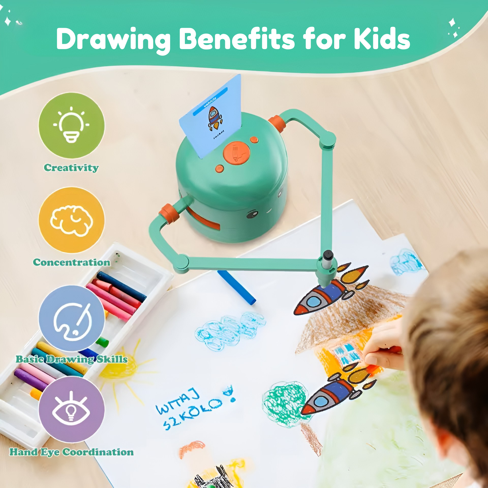 With +200 drawing cards, your little artist will always have something new to create. Just pick a card and let the robot do the rest!